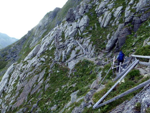 急な登りになって梯子が連続して高度を上げていきます。八本歯の分岐までもう少しのところまで登ってきました