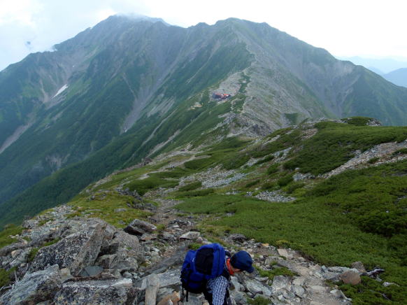 あの尾根の上、北岳山荘テント場まで5時間とみた