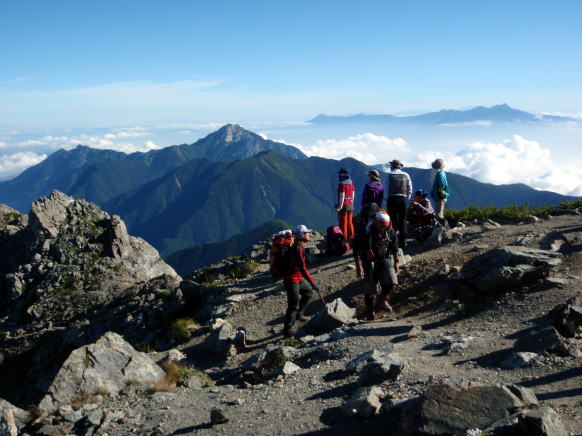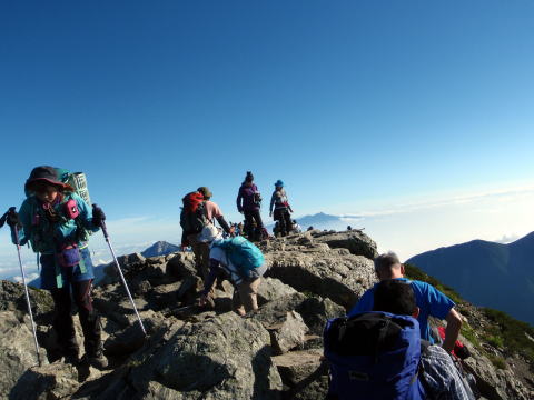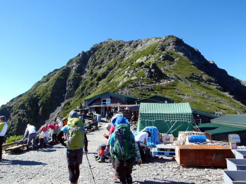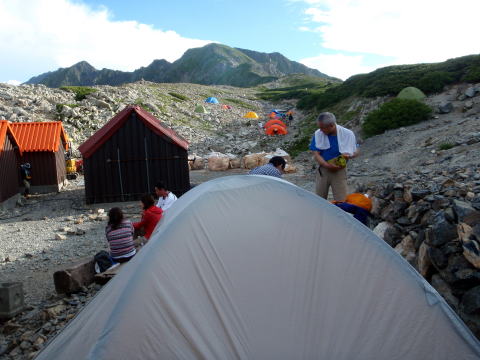 さてそろそろ行くか、ここで白根三山縦走のクラテンさんとお別れ、これから一人旅のクラテンさん、ちょっと寂しそう。来年はもっと多くで来よう