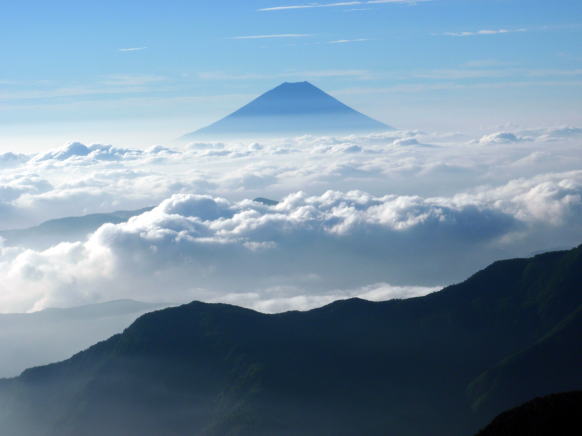 雲海の上、富士山のシルエット、今日も素晴らしい天気になりました