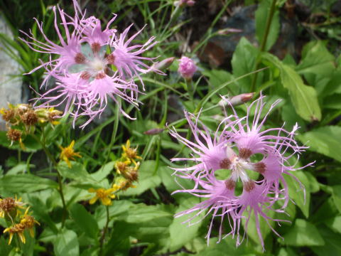 足もとには山の花、タカネナデシコ、タカネビランジ、ミヤマアキノキリンソウ・・・。高嶺とか深山とか、夏山の雰囲気いっぱい