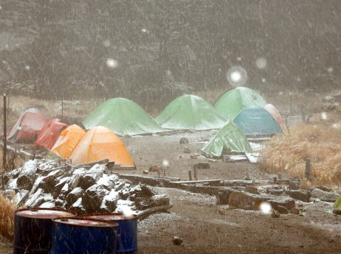どのテントを見ても冬用テントではないような。テン泊派の自分、山行直前まで最新の情報を入する努力をすることと、高層天気図での確認を心掛けたいと思いました。