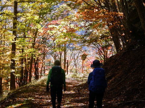 翌日は気持ちよく雪を踏んで歩けました。広葉樹から針葉樹、うっそうとしたふかふかの苔、そしてまた紅葉した広葉樹と、変化を楽しんだ山行となりました。