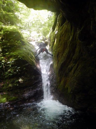 全般的に奥多摩にしては大きな渓相、小さい滝でも釜は深く、ミニゴルジュもあったりで全身水に浸かりました