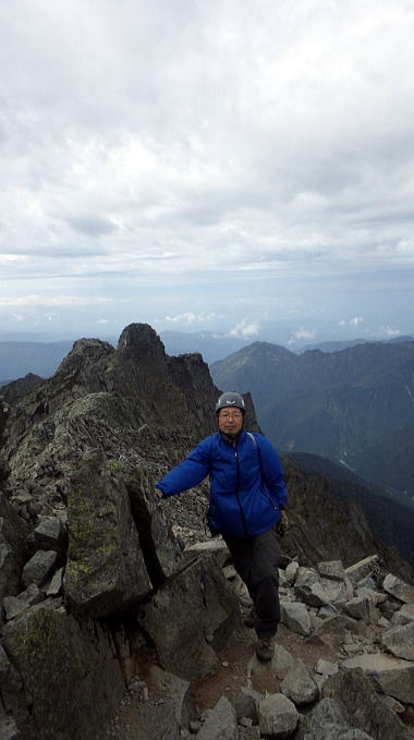 まだまだ緊張の連続です。一瞬ひゃっとする場所がありましたが、濡れて滑る場所や強風もなく無事に奥穂高登頂!