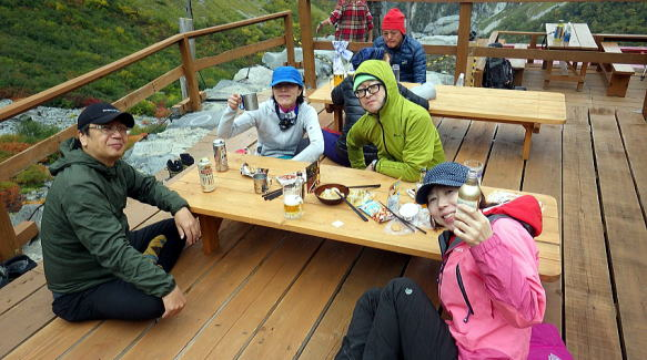 13時頃テント場に戻りリーダーに報告。皆んな無事で緊張から解放された瞬間でした。ここから2度目の楽しい宴会の始まりです。長くなるので割愛させて頂きます。