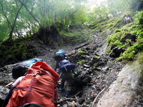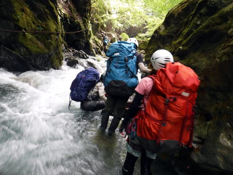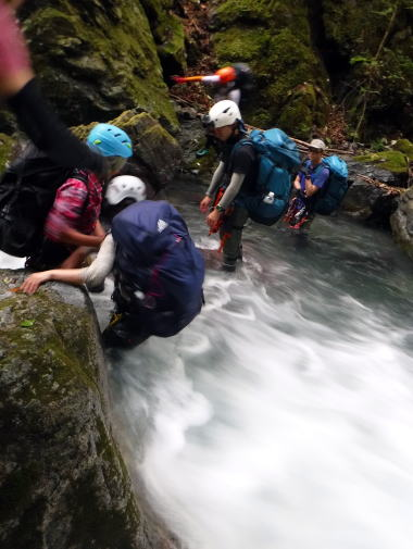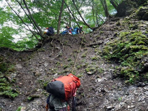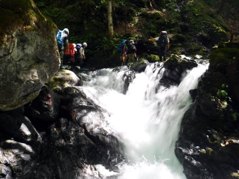 沢は決まりがないからいいね。こっちを行けなければ、あっち。あっちを行けなければ巻いちゃえばいい。ロープに引っ張られて、慣れないメンバーは大変そう。きっと怖いんだろうなぁ。僕も去年は怖かった。だんだん平気になるんだよね。
