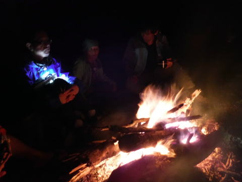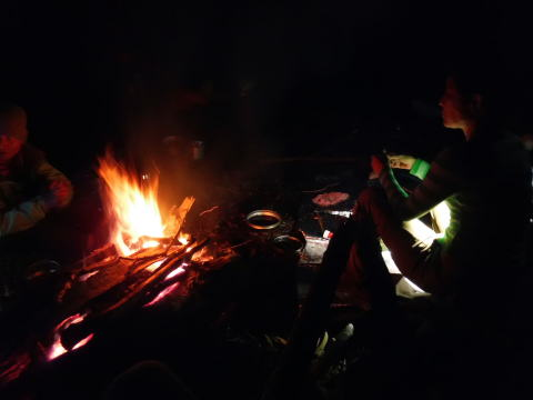 少し薪を足したいな。うまく火が移るかな。そーっと薪を置いて、火が元気になるかな?じっと火を見つめながら焼酎をひとなめ。風が吹くと少し気持ちいい。ぱちぱちぱちっ。