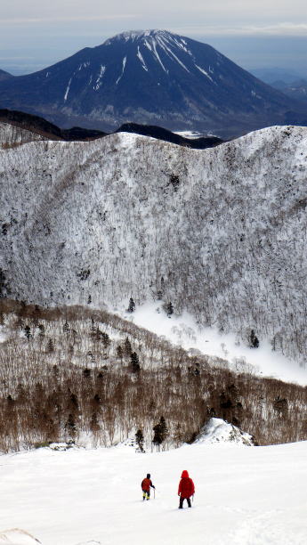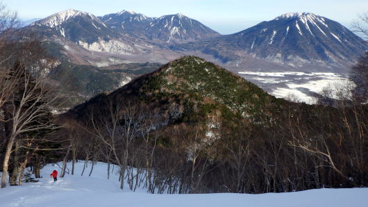 登って来た急斜面を下り、スキー場のゲレンデを下り、温泉めがけて進みました。