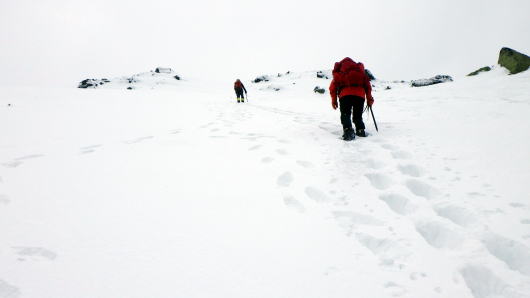 そしてその後の登りもなかなかの斜度。でも、踏み跡もしっかりあり、先行者に感謝。どうやら、男体山に1日に5回も8回も登る強者がいて、その方たちが先に登っていたらしい。