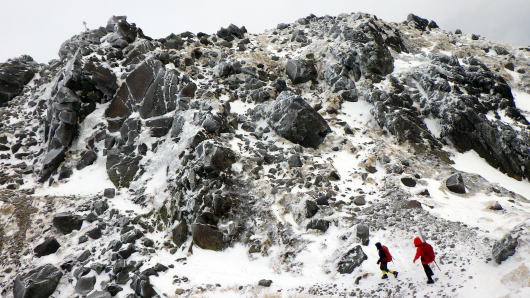 五色沼避難小屋を過ぎて樹林帯を抜け、急斜面に取りつく