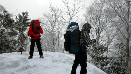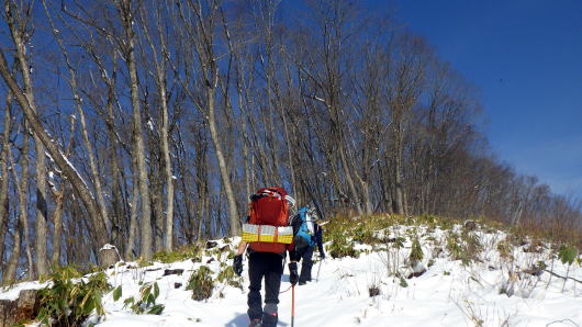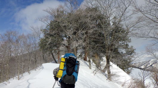 天気は良かったけれど、雪山の藪漕ぎは時間がかかりますね。