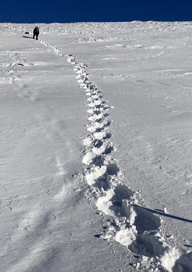 三峯神社行きのフリー乗降区間の埼大山寮付近でバスを降り、急登続きの雪の