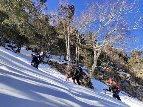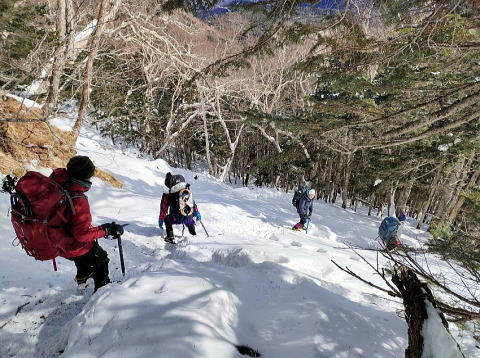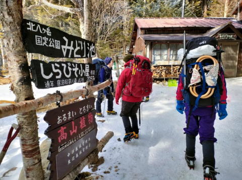 雪深くなる前の1月の天狗岳、みんなで協力して楽しい山行となりました.