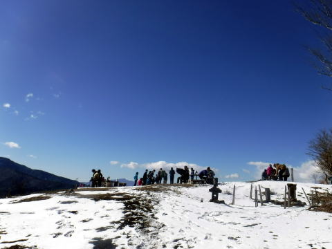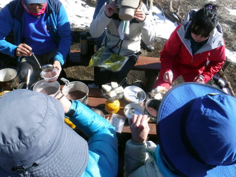 頂上では、みんなで餅焼いて、あんこを溶かして、ぜんざい大会開きました。