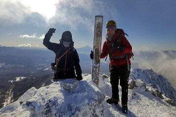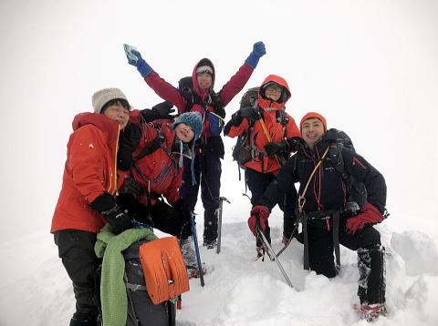急登をガシガシ登ります。たまに雪庇。1050のピークは雪庇を崩してのっ越す。急登を登り切ると棒立山。ご褒美の景色が待っていました。時間は14時過ぎ。