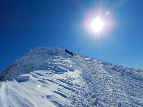 西黒尾根は私も夏に登ったことがあるが、あの急登をラッセルしながら登ってきたのかと思うと、信じられない気分だ。