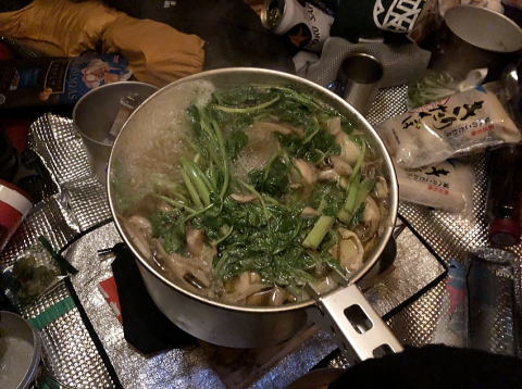 夕食担当の方が、きりたんぽ、セリ、鶏肉、きのこ等、様々な食材を持ってきてくれた。セリを探しにスーパー3軒をはしごしてくれたらしい。本当にありがとうございます!