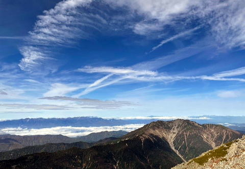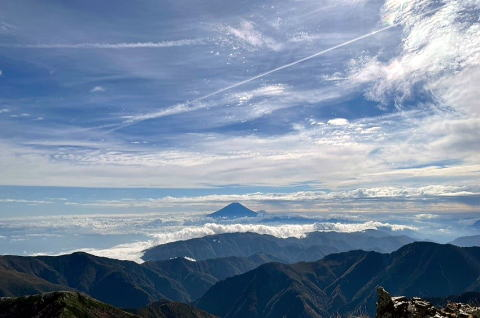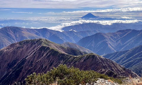 池山吊り尾根、素晴らしい。鳳凰、八ヶ岳、浅間山塊、上越の山まで見えます。夢中で繰り返し撮影タイム。