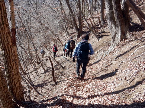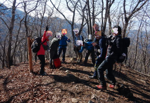落ち葉をかきわけ登った先の、山頂から見る富士山がとても綺麗でした。2月3日、この日は節分。山頂では節分の鬼も現れました。