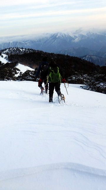 最低限の荷物とピッケルを持ち、ワカンを履いて6時に出発