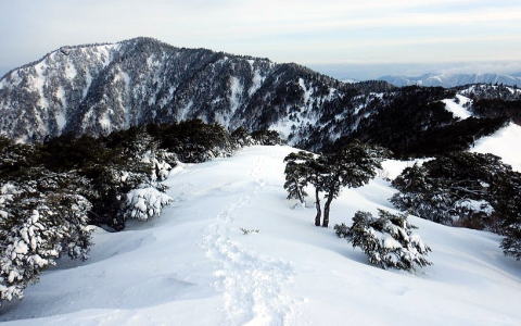 雪庇が続き緊張でピリッとする、動物の足跡に一喜一憂する