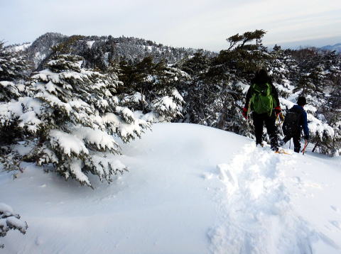 ※河下山で一息入れて、黒滝山に向かいます。雪が降り続きます。