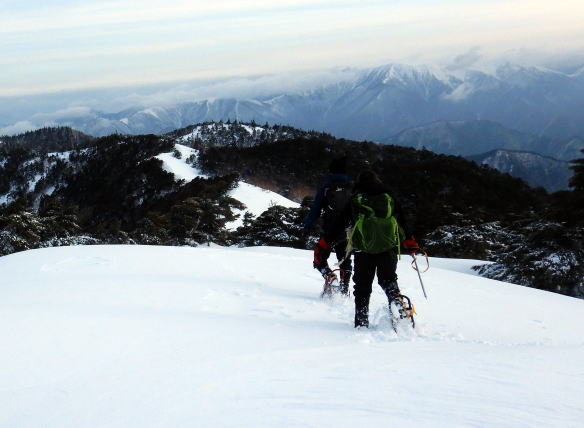 昨日の頑張りへのご褒美のような快晴、那須連山、飯豊連峰に挨拶