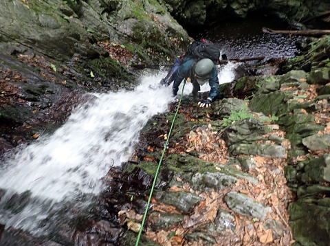 大滝2段15mを高巻きで登ったところで、下流にB班を目撃。