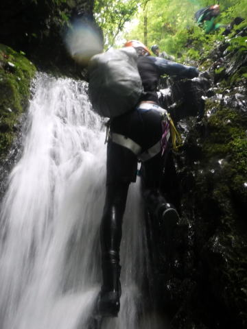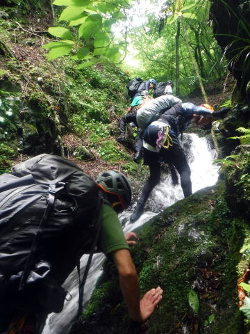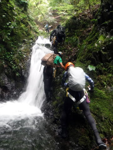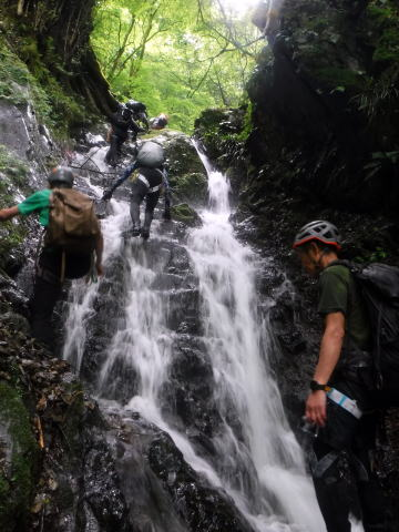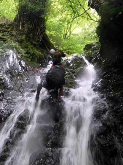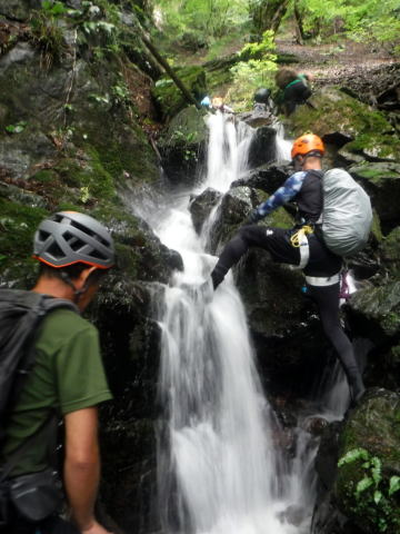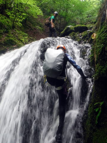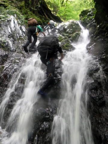 続く何番目かの小さな滝は、先日の大雨で増水しているせいか、どばどばと水が殴りつけるのを遡るのでなかなか難しい。