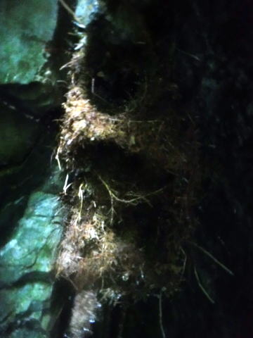 (※水しぶきが当たるようなところにミソサザイ?の巣)