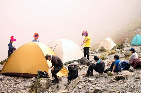 ゆっくりゆっくり上りきった やったー!着いた! テントを張り、それから荷物を軽くして山頂を目指す 50分くらいがとても長かった