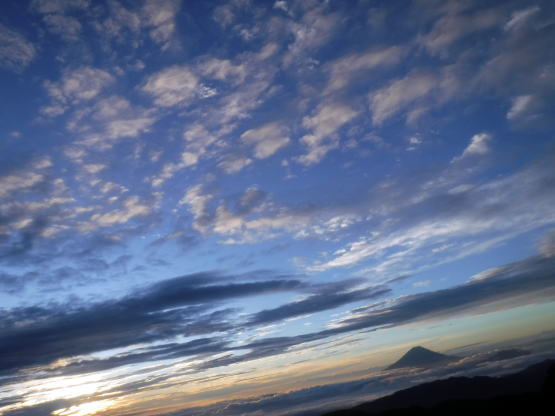 肩の小屋から望んだ富士山は朝日を浴びて、まさに絶景。 初めての泊まり山行、初めての3000m級の登山に挑戦するメンバーもいましたが、和気藹々とした良い2日間でした。