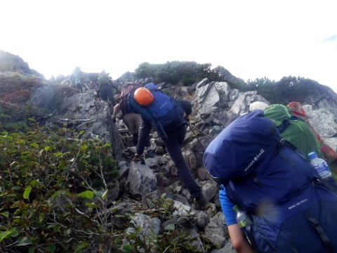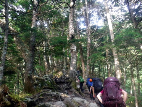 少し安心しつつ7時登山開始 初めてのテント泊だというメンバーと一緒にワクワクするねーと楽しく登り始めた 予想はしていたが登りをひたすらに上る 2時間ほどで白根御池小屋到着 そこからがすごい急登だった