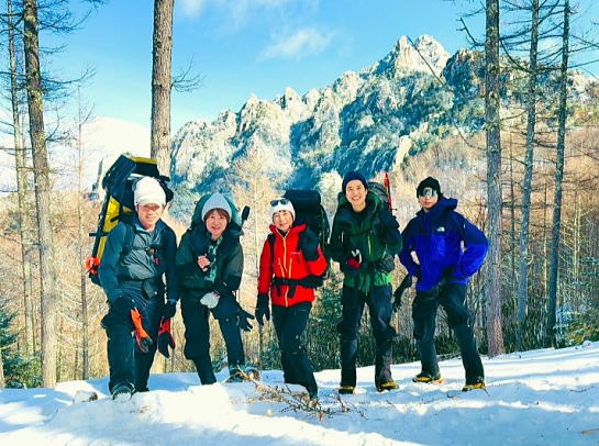 初日は瑞牆山。駐車場から1時間弱登って、富士見平小屋に到着。